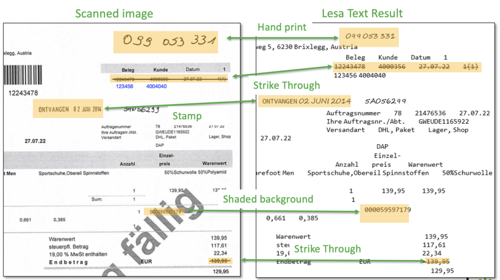 • Robustheit von Schriftart und Layout gewährleisten: Funktioniert bei formatiertem Text, unordentlichen Belegen, Tabellen und mehrspaltigen Seiten.